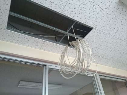 校内LANの配線工事 公開日 2014/08/14 更新日 2014/08/14 その他の教育活動 各教室からネットにつなげられるように有線LANの工事をしています。10月から使えるように準備を進めています。(8月14日)