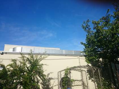 朝方、西の空に下弦の月が見えています。(8月15日)