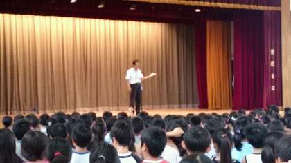 校長先生と代表委員会から喜多見中と一緒に取り組んでいる紹介がありました。(9月8日)
