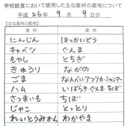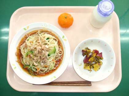 *冷やし中華 *じゃこ入り大学いも *冷凍みかん *牛乳