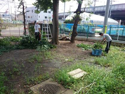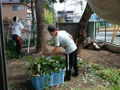 校長先生と主事さんが家庭科前の樹木を剪定しました。(9月9日)
