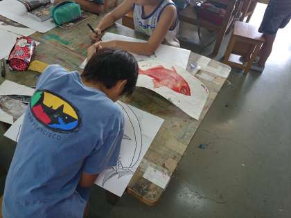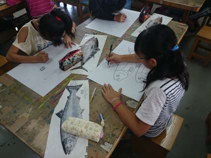 魚の画像を模写して色をつける準備をしました。(9月12日)