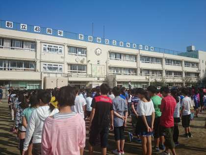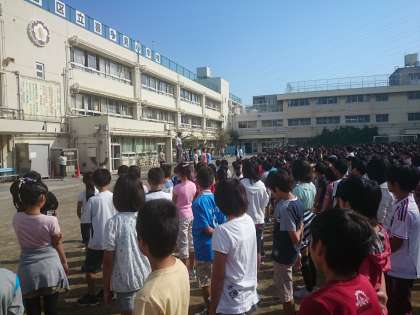 朝晩が涼しくなってきました。校庭で朝会が行われました。(9月22日)