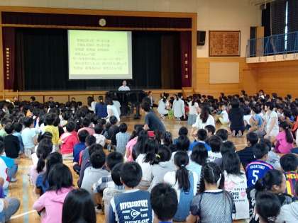 喜多見小学校の開校記念日が近づいてきました。今日は、お誕生日にちなんだ歌を歌いました。(9月25日)