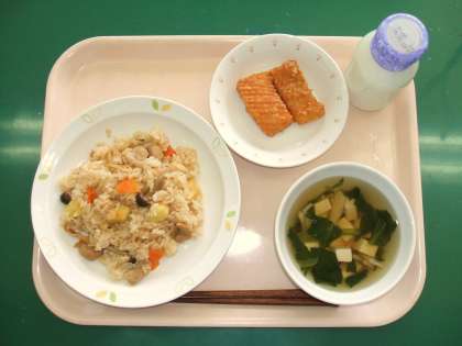 *吹き寄せごはん *いかのカリン揚げ *すまし汁 *牛乳