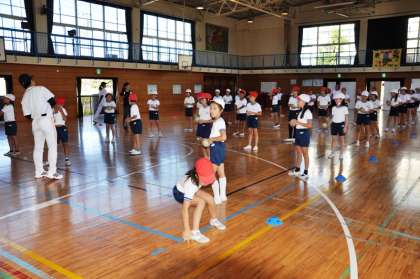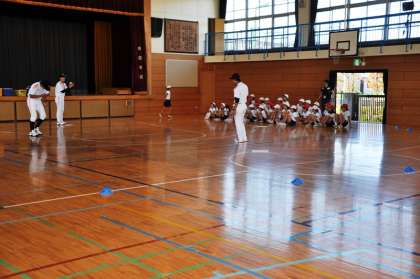 ゲストティーチャーによるTボール指導 4年 公開日 2014/10/15 更新日 2014/10/15 4年生 10月14日、読売ジャイアンツの方が4年生にTボールの指導をしてくださいました。 「ゴロキャッチ」をしました。「腰をおとして、両手で取る」とていねいに教えていただき、楽しみながら上手になっていきました。 4年
