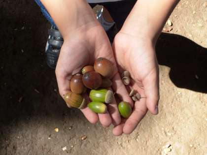 台風の後だったので、木の葉やどんぐりがたくさん落ちていました。いろいろな遊び方で秋を楽しみました。