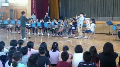 中休みに、金管バンドの演奏会が体育館でありました。少人数ながら難易度の高い曲を迫力ある演奏で聞かせてくれました。(10月29日)