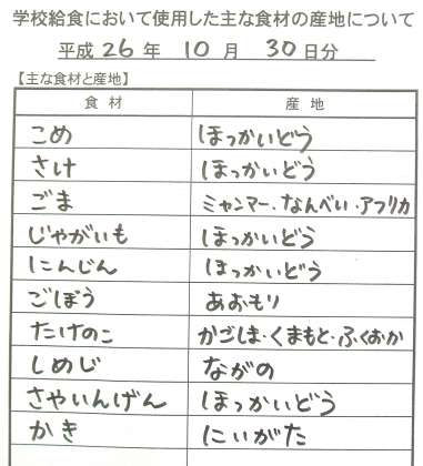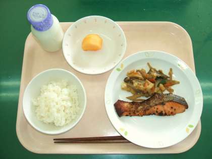 *ごはん *鮭の南部焼き *じゃがいものきんぴら煮 *くだもの(柿) *牛乳