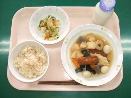 *茶めし *おでん *白菜のゆず風味 *牛乳