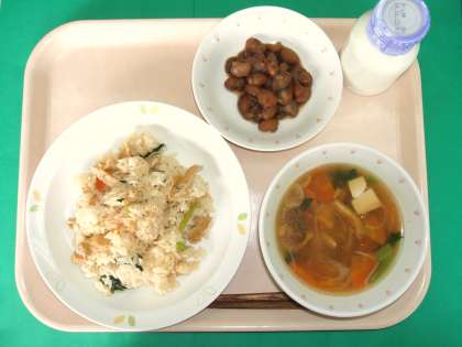 *子ぎつねごはん *うずら豆の煮豆 *吉野汁 *牛乳