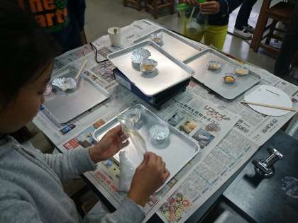 科学クラブ(クラブ活動) 公開日 2014/11/26 更新日 2014/11/26 その他の教育活動 今日のクラブはべっこう飴をつくりました。電熱器を利用して、家から持ってきたいろいろな砂糖を使い、変化する様子を観察しながら作っていました。(11月26日)