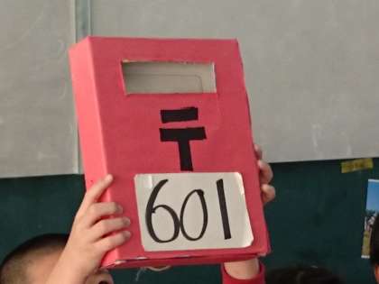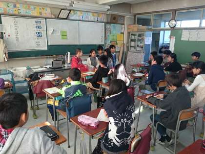今日は、各クラスにきたみゆうびんのお願いに行きました。自分たちが伝えたいことをしっかり話していました。(11月27日)