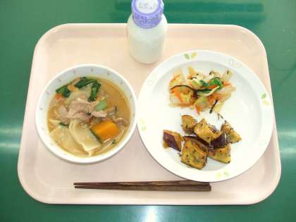 *ほうとう *白菜のゆず風味 *じゃこ入り大学芋 *牛乳