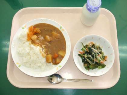 *カレーライス *福神漬 *海そうサラダ *牛乳