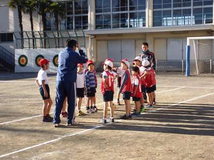 「楽しいね」「ああ、楽しかった」とこどもたちは大喜び。1月10日(土) 2年生がサッカーチームのコーチの方にサッカーを教えていただきました。どんなふうに教えてあげようかと計画を立てて、来てくださいました。どうもありがとうございました。