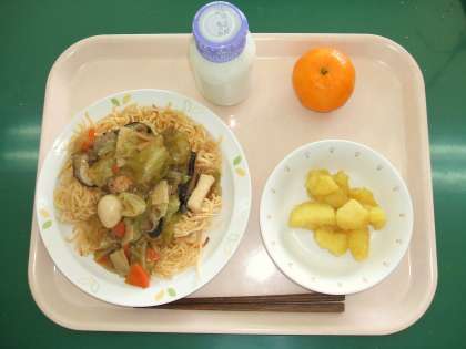 *五目あんかけそば *さつまいものレモン煮 *くだもの(ぽんかん) *牛乳