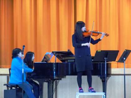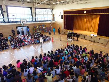 1月16日の音楽朝会は喜多見小の先生やこどもたちの有志によるコンサートでした。このときばかりは寒い体育館も熱気溢れるコンサート会場となりました。