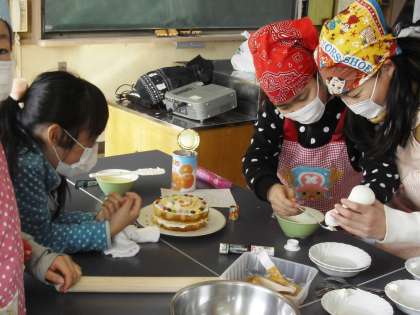 12月にインフルエンザなどがはやってクラブが中止となりました。今日はそのときに予定していたケーキ作りに挑戦しました。