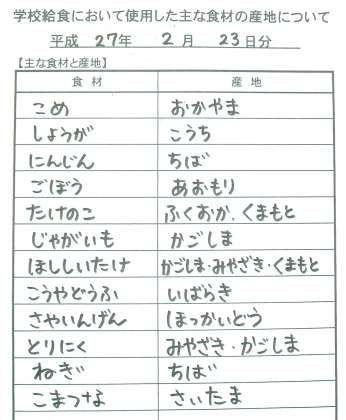 *雑穀ごはん *筑前煮 *吉野汁 *牛乳