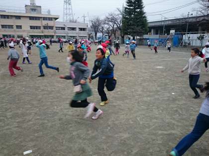 今日は、校庭でふえ鬼をやりました。みんな鬼か逃げるために一生懸命走っていました。(2月26日)
