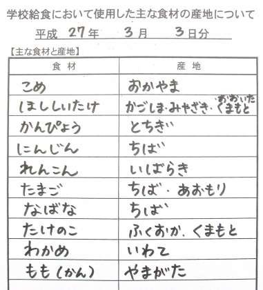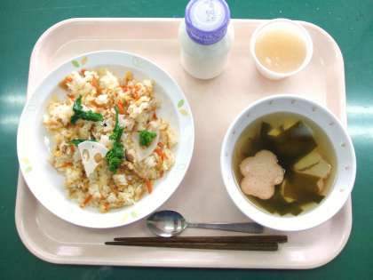 *菜の花ちらし寿司 *すまし汁 *ももゼリー *牛乳