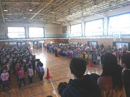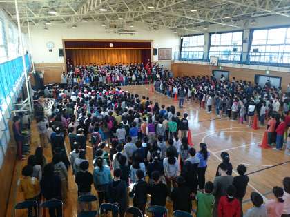 今日は、6年生が卒業式に歌う曲を全校児童に聞かせました。(3月5日)