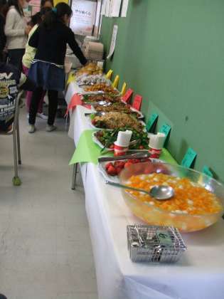 たくさんの料理の中から、栄養バランスとカロリーを考えて自分で選びます。
