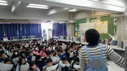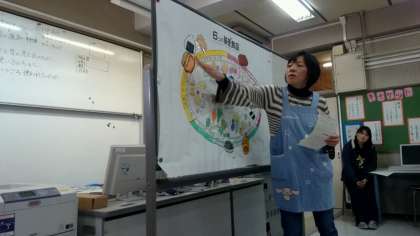 栄養士の先生からバランスのとれた食事について説明がありました。(3月13日)
