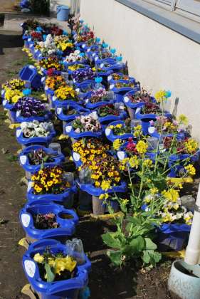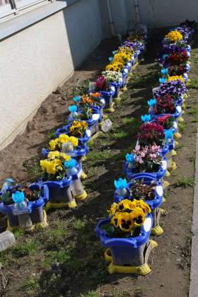 東京都公園協会から花の苗や土をいただき、1年生や2年生、園芸委員会の人たちが植えました。大切に育てましょう。