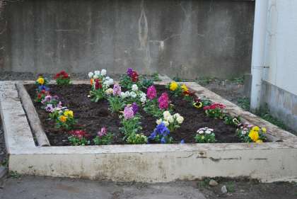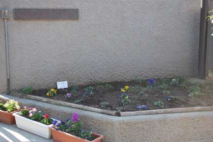 東京都公園協会から花の苗や土をいただき、1年生や2年生、園芸委員会の人たちが植えました。玄関や正門前、校庭にもたくさんの植木鉢やプランターが並んでいます。