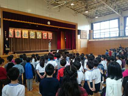 明日の一年生を迎える会の歌を練習しました。(4月10日)