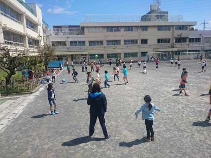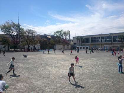 校庭の水たまりもなくなってきたため、中休みは校庭遊びとなりました。(4月15日)