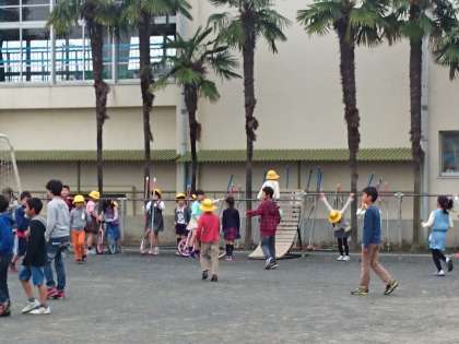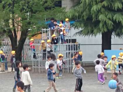雨が上がり、校庭の遊具で友達と楽しく遊んでいました。(4月21日)