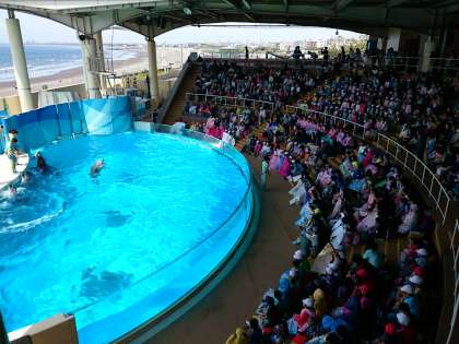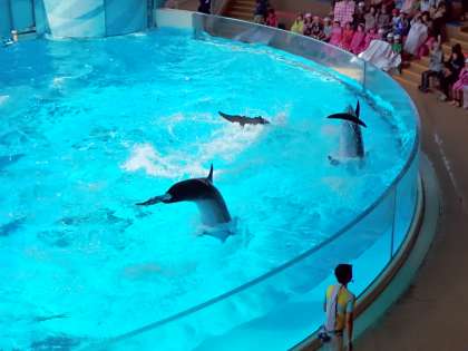 みんな、イルカのショーを楽しんでいます。(4月24日)