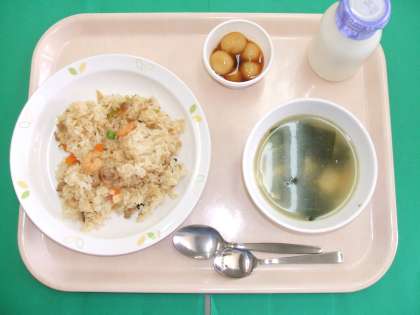 *中華おこわ *わかめスープ *みたらしだんご *牛乳