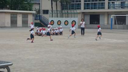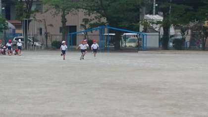校庭で、運動会の徒競走で走るコースで練習しました。(4月30日)