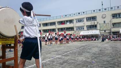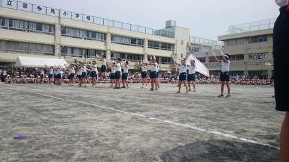 お互い、全力で正々堂々と戦うために、赤組は白組を、白組は赤組を応援しました。(5月23日)