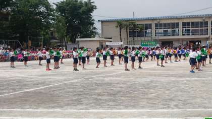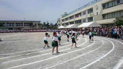 運動会(みんなでワーハッハ 1年生) 公開日 2015/05/24 更新日 2015/05/24 1年生 小学校に入学して初めての運動会。1年生は元気いっぱいにおどります。速いリズムにのって、いろいろな動きに挑戦し、一生懸命に練習してきました。(5月23日)