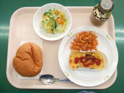 *ぶどうパン *スペイン風オムレツ *ペンネアラビアータ *コールスローサラダ *コーヒー牛乳