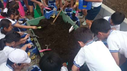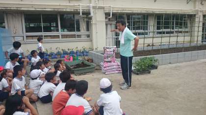 今日は、自分の植木鉢にピーマンの苗を植えました。(5月28日)
