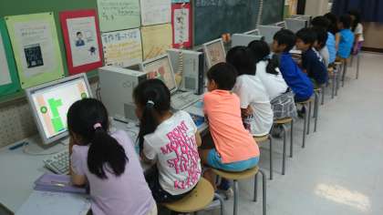 コンピュータ室で、マウスの操作練習をしました。(6月8日)
