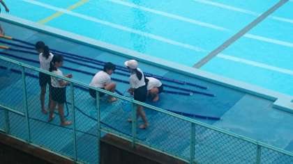 今年度の水泳教室のために、プール用具の準備をしました。(6月10日)