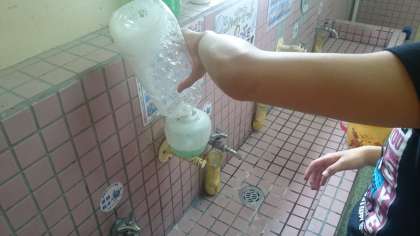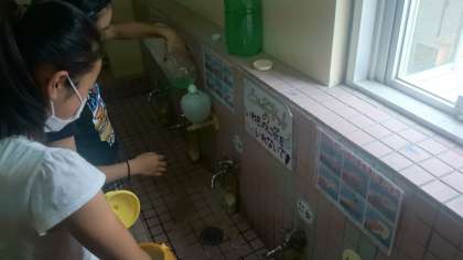 保健委員会は、毎日、休み時間に流しの手洗い石鹸の補充をしています。(6月10日)