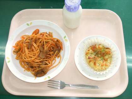 *スパゲティーナポリタン *ポテトのクリーム焼き *牛乳