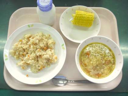 *ツナライス *ゆでとうもろこし *トマトと卵のスープ *牛乳