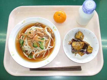 *冷やしうどん *じゃこ入り大学芋 *冷凍みかん *牛乳
