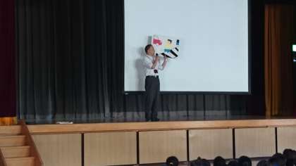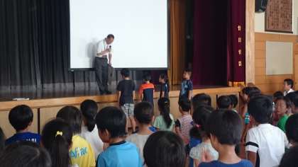今日は、喜多見中学校からお知らせがあったので体育館で行いました。(7月13日)
