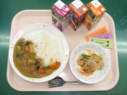 *夏野菜カレー *福神漬 *こんにゃくサラダ *セレクトジュース