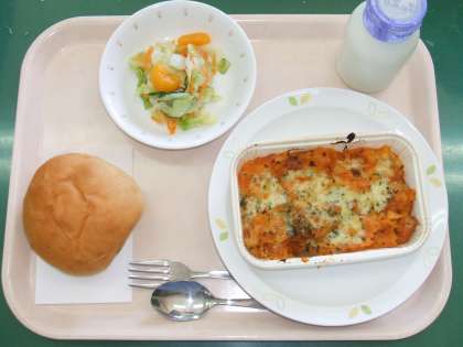 *ぶどうパン *ラザニア *みかん入りフレンチサラダ *牛乳